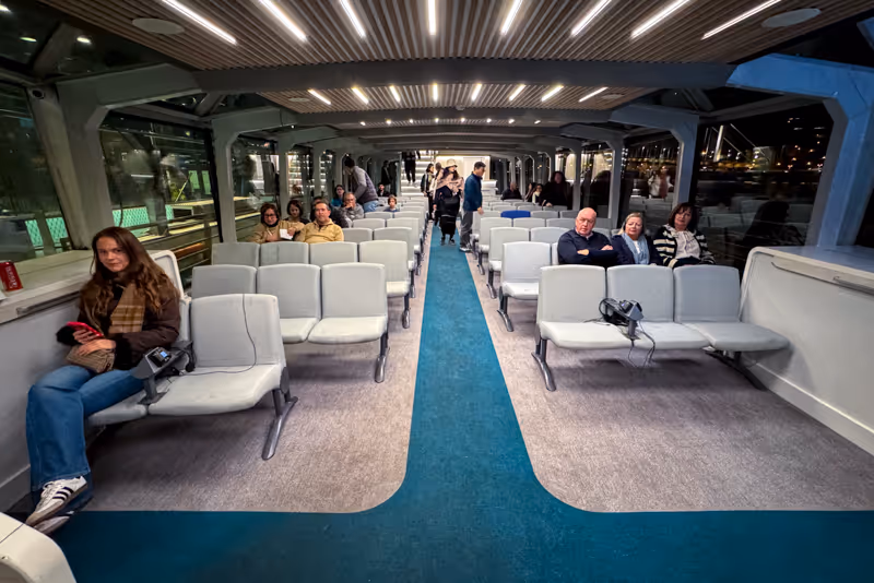 Risteilyn aikana sisävalot sammutetaan. Tämä nerokas yksityiskohta vähentää merkittävästi ikkunoiden heijastuksia, mikä johtaa paljon selkeämpiin ja kauniimpiin valokuviin. Vaikka kaupungin ulkovalojen pieni heijastus saattaa silti näkyä, kokonaisvaikutus on erinomainen kuvien kannalta.
